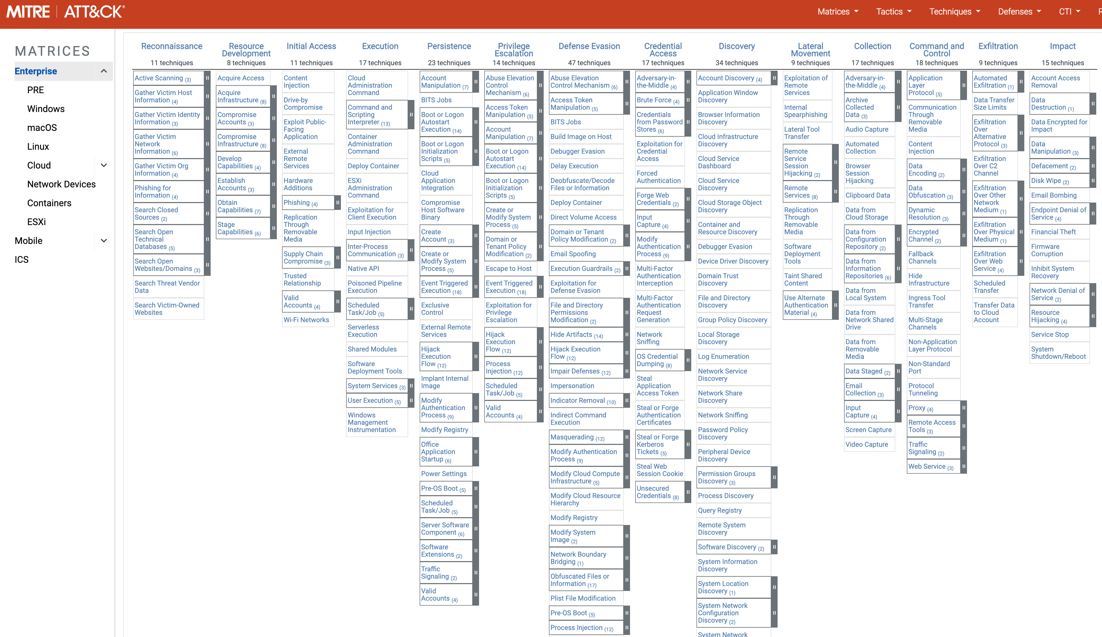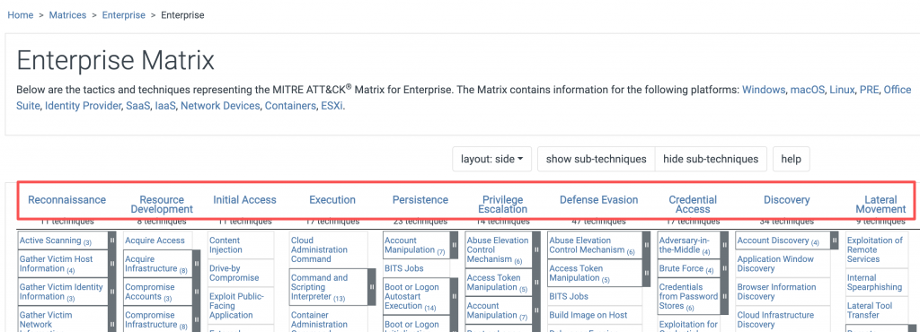 https://attack.mitre.org/matrices/enterprise/