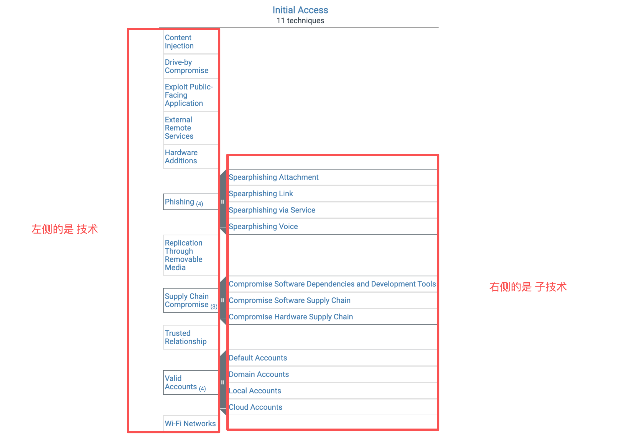 如果框右边有灰色扩展区,则说明该技术拥有 Sub-Techniques(子技术)。