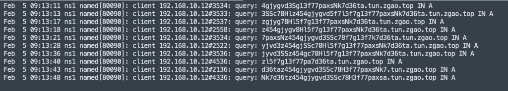 如果我们看到某台主机在短时间内频繁请求随机生成的子域名,例如长度异常、无明显含义的域名,那么需要高度警惕。这类行为很可能与 DNS 隧道或 DGA 域名生成算法有关。