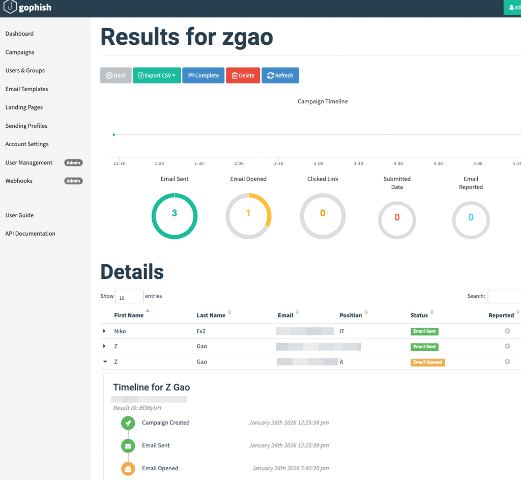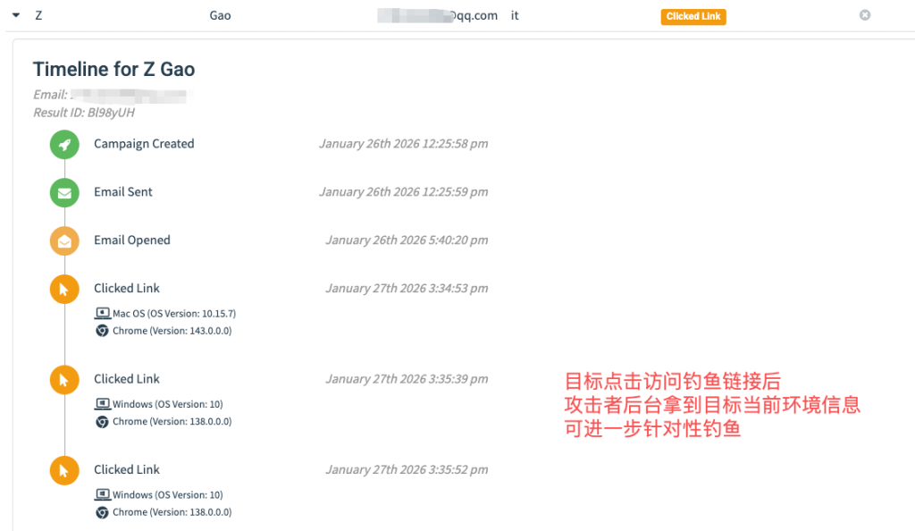 使用gophish发送钓鱼邮件后,如果目标点击查看了钓鱼邮件内容,平台上会显示当前钓鱼邮件的的状态变更为Email Opened。