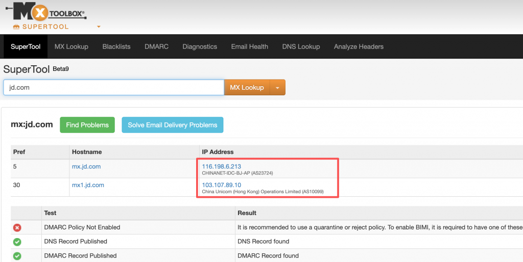 在这种情况下,我们不能直接下结论,而是要进一步确认:这个域名,正常情况下到底应该使用哪些邮件服务器?