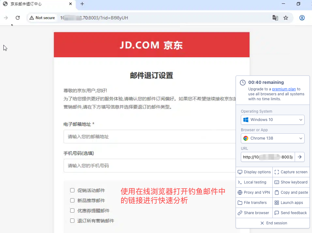 在实际应急响应中,有时为了快速验证链接行为,会使用一些在线浏览器服务来访问可疑 URL。这类方式的优点很明显: