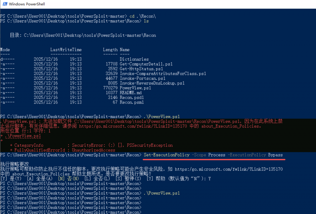 Set-ExecutionPolicy -Scope Process -ExecutionPolicy Bypass Import-Module .\PowerView.ps1