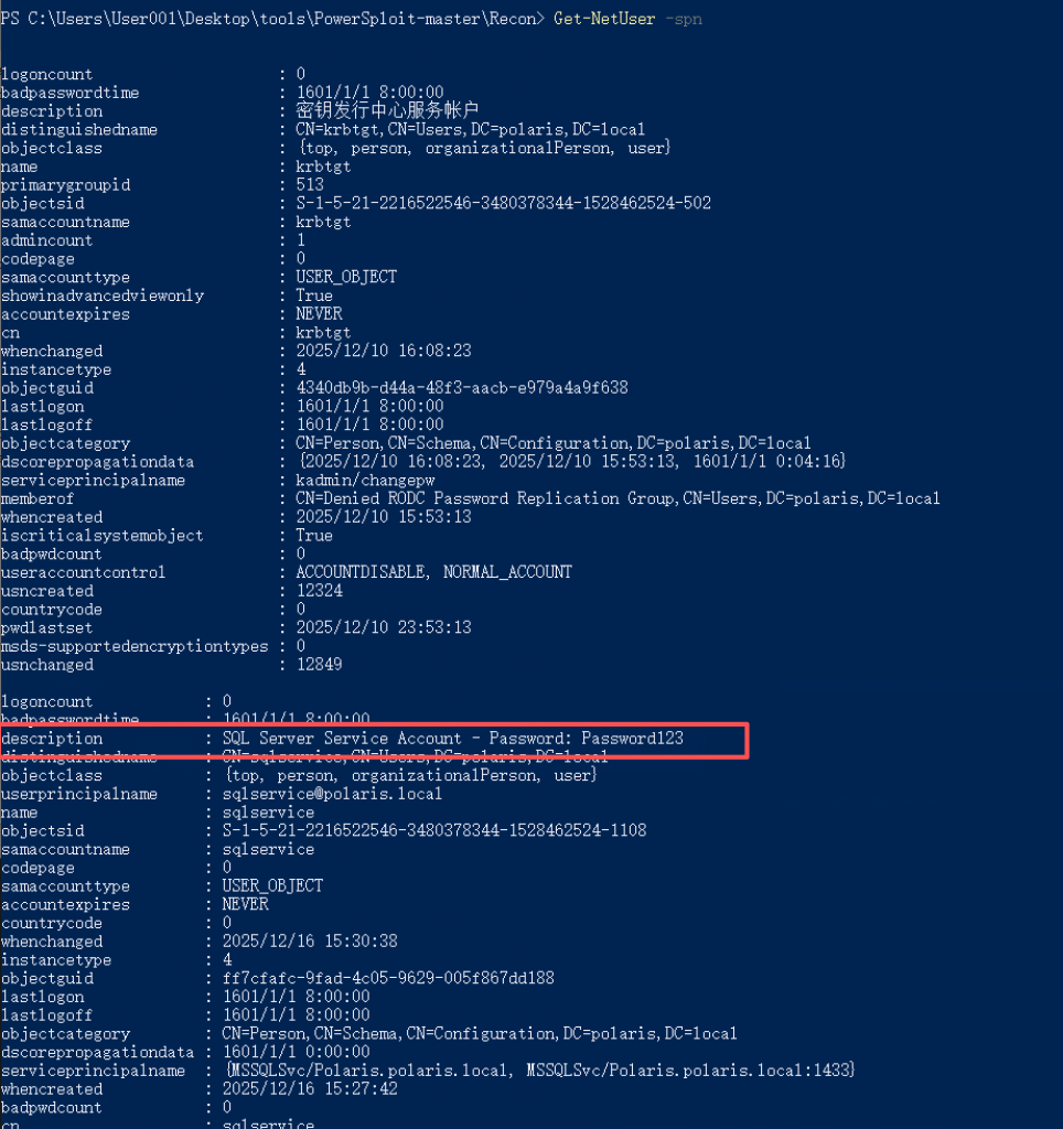 有些管理员甚至会把密码直接写在账号的 Description 字段里。这种情况在真实企业环境中遇到过好多次。