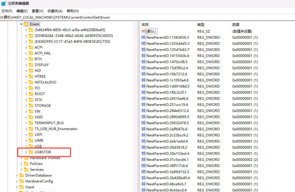 这个键只记录外接存储类设备,比如 U 盘、移动硬盘等,不包含键盘、鼠标这类普通 USB 外设。USBSTOR 往往是确认 USB 是否参与数据拷贝事件的第一块证据。