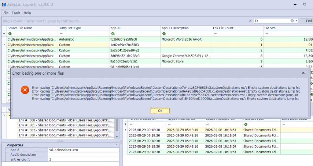 比如当你已经确认USB 盘符是 E:,并且E: 确实对应某次 USB 插入,而 Jump Lists 又显示某个敏感文件从 E: 被打开,那么这条证据链已经非常完整了。